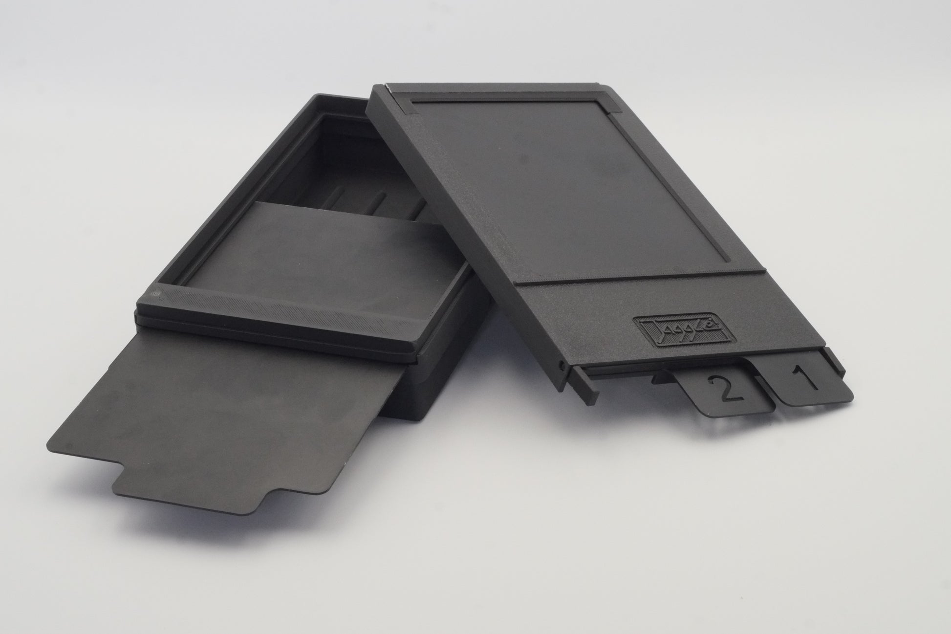 This extender module is designed to sit between your Jagglé filmholder and the standard developing tray. It allows you to separate the filmholder from the chemistry area after dropping the film or paper, keeping your filmholder clean and dry during development. Thanks to its built-in darkslide, it can even be used as a standalone daylight-developing unit for single sheets.
