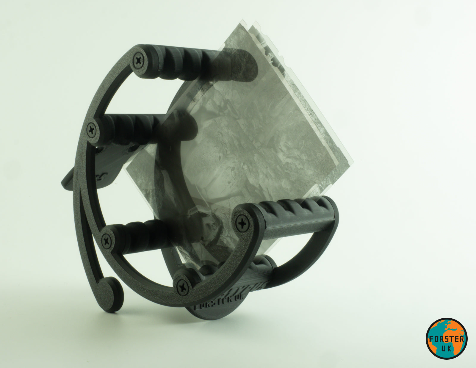 Tiltable 5x7 drying rack for 6 films/plates in black.