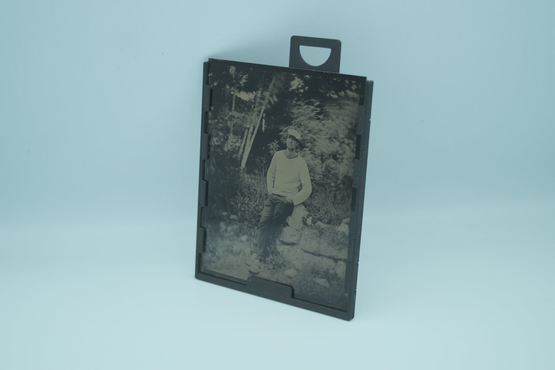 Jagglé SP-Plate Holder is designed for use with the Stearman Press SP-445 and SP-645 daylight developing systems. It securely holds one glass or aluminium dry plate up to 2.5 mm thick, allowing dry-plate negatives to be developed inside a daylight tank for a simpler, more controlled workflow.
